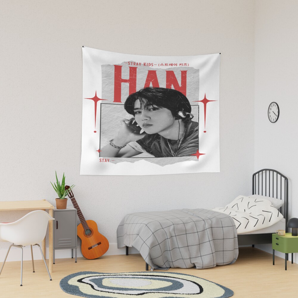 Stray Kids Han Y2k Scrapbook Design Tapestry